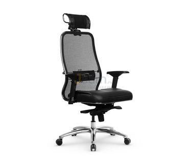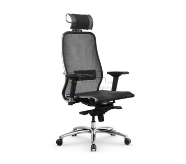 Кресло для руководителя SAMURAI S-3.05 MPES ЧЕРНЫЙ ПЛЮС №51209 - механизм качания без фиксации, регулировка жесткости качания по весу сидящего, ограничения по весу: 120 кг, основание: металл, каркас: немонолитный, производитель: россия и снг, подголовник, подлокотники, поясничный упор, регулировка по высоте, регулируемые подлокотники, резиновые колеса для паркета, сетка в сидении, сетка в спинке, синхромеханизм, в наличии в Рязани.